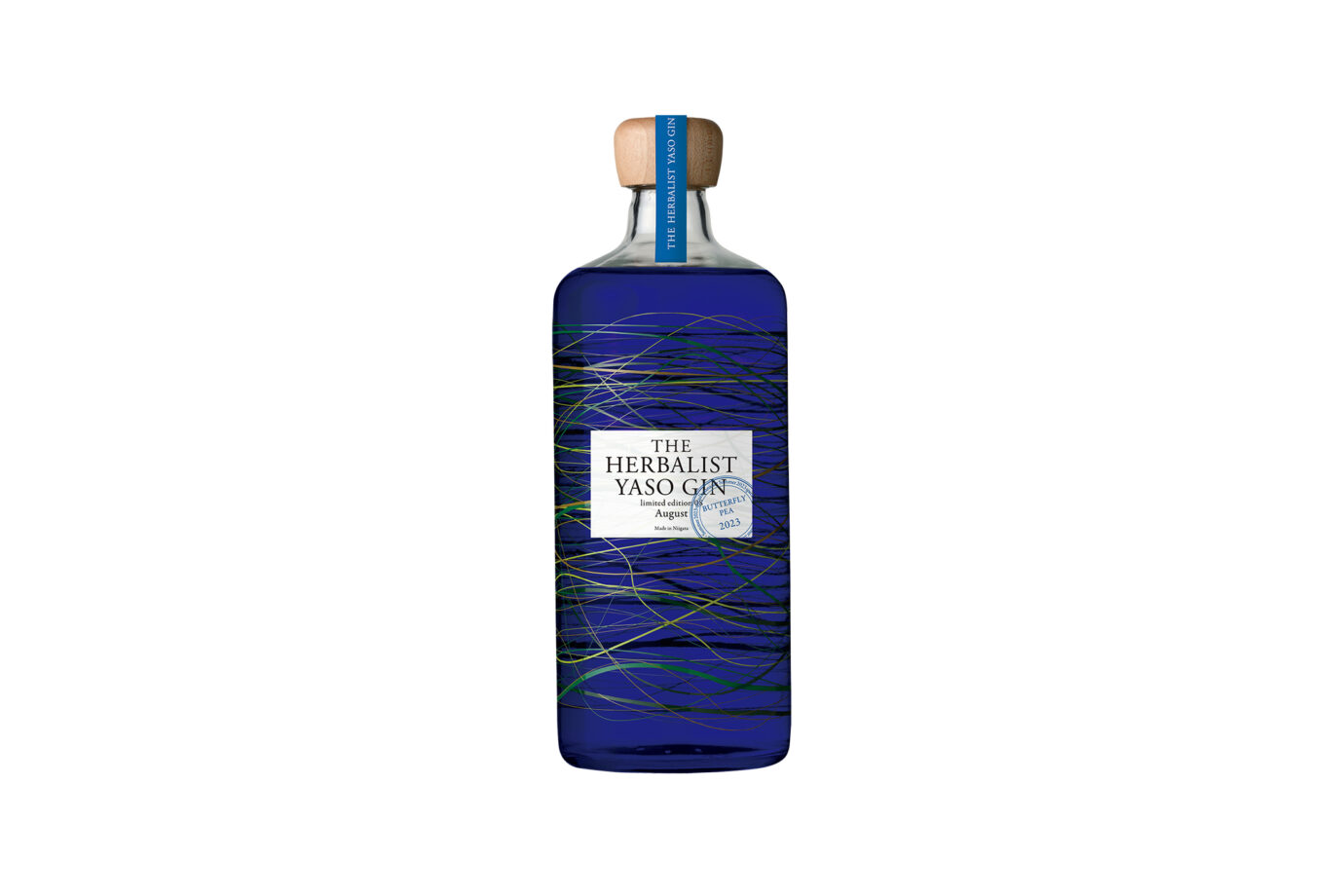 8月の限定ジンはバタフライピーを漬け込んだ青いジン。