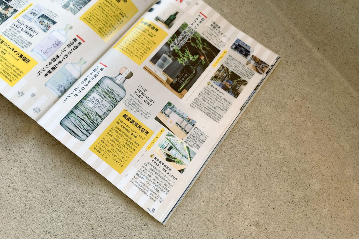 今回は「クラフト酒の世界」特集の「クラフトジン」カテゴリーにおいて、「越後薬草蒸留所」と「越後薬草蒸留所CRAFT GIN STAND」、「THE HERBALIST YASO GIN」が掲載されています。