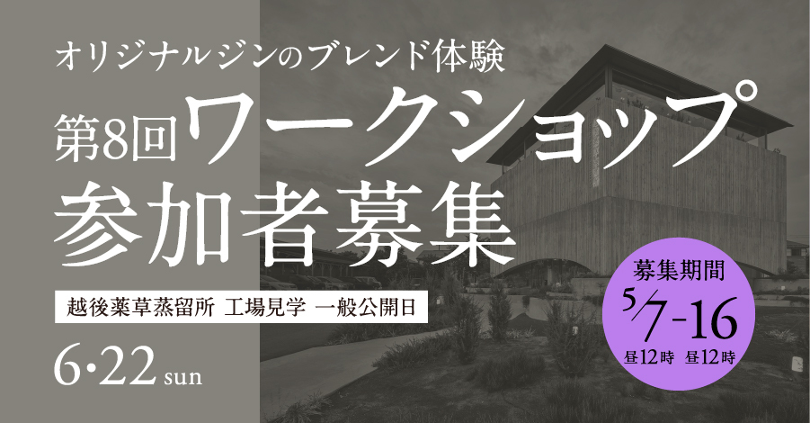 先日お知らせしました6月22日(日)に開催される「越後薬草蒸留所オープンデー」については事前予約制となります。つきましては、参加者の募集を5/7(水)お昼12時から受付いたします。詳細は以下のとおりです。