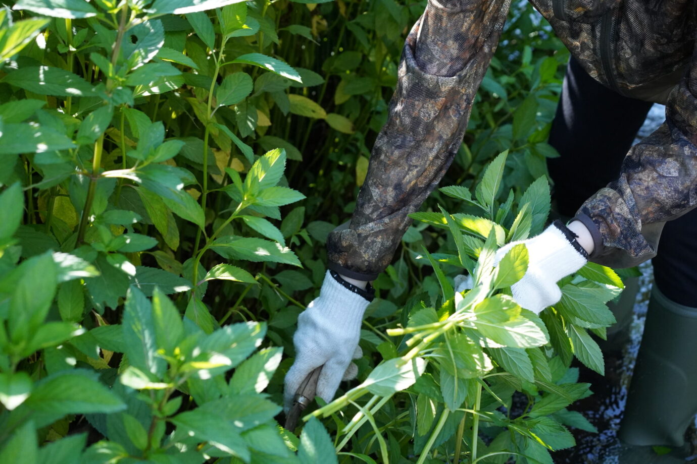 ニホンハッカは米山トウキなどでお世話になっている前畑さんのところに実際に伺い採取させて頂きました。