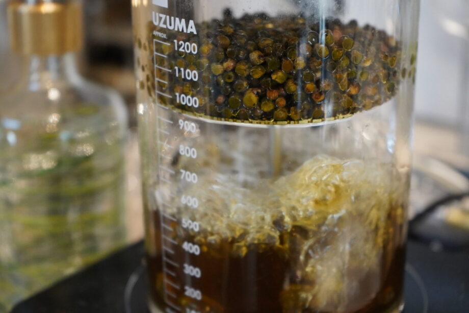 1回目の試作品はコリアンダーが入っていたり、少し違う印象のものでした。そこから意見を再度もらい、もう少しルート系の苦味や風味を加えるために、初めて使用する、このジンの特徴の一つでもある高麗人参を加え、さらにオレンジピールとレモンピールを掛け合わせることでオレンジのジューシーな味わいとレモンのビターな風味を活かした何かはわからないフルーツ感を演出しました。