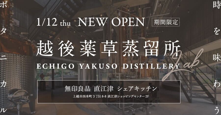 Echigo Herb Distillery Lab." will be open at MUJI Naoetsu Share Kitchen from January 12 (Thu)!