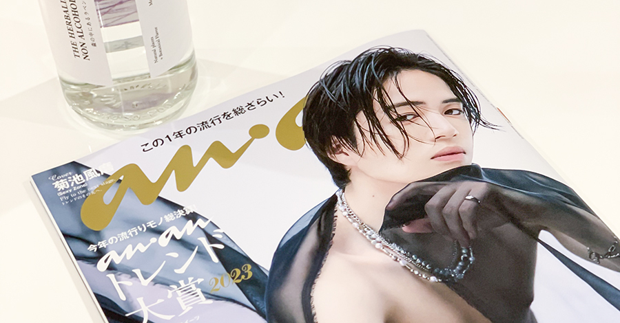 THE HERBALIST YASO GIN NON ALCOHOLIC YASO GIN - Lavender Field in the Forest -" from our company, THE HERBALIST YASO, was featured in the November 15 issue of the popular women's weekly magazine "anan" on November 8, 2023!