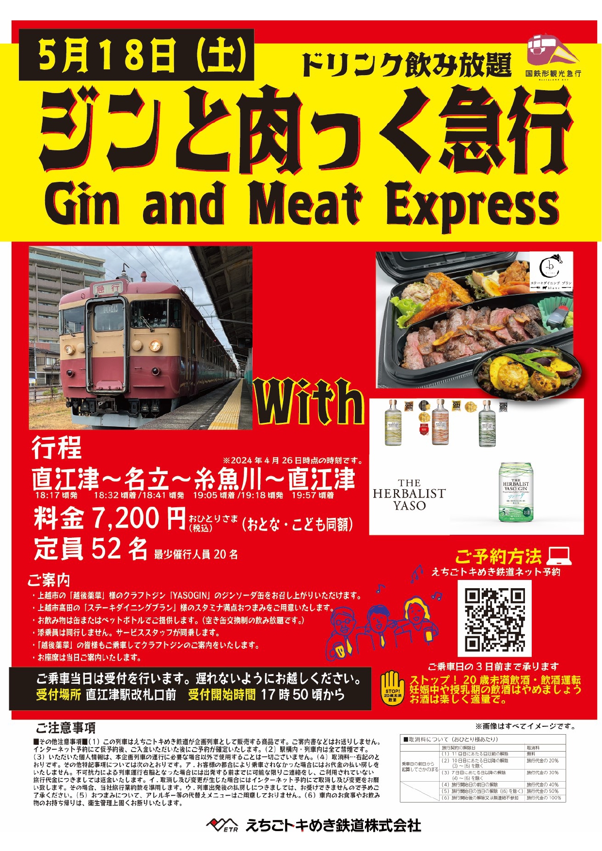 On Saturday, May 18, 2024, Echigo Tokimeki Railway will operate a special sightseeing express train. We will offer our new product "THE HERBALIST YASO Gin Soda" on the train.