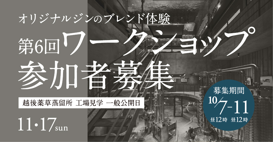 As for the "Echigo Herb Distillery Open Day" to be held on November 17 (Sun.), as announced recently, advance reservations are required. Therefore, we will start accepting applications for participation from 12:00 noon on Monday, October 7. Details are as follows.
