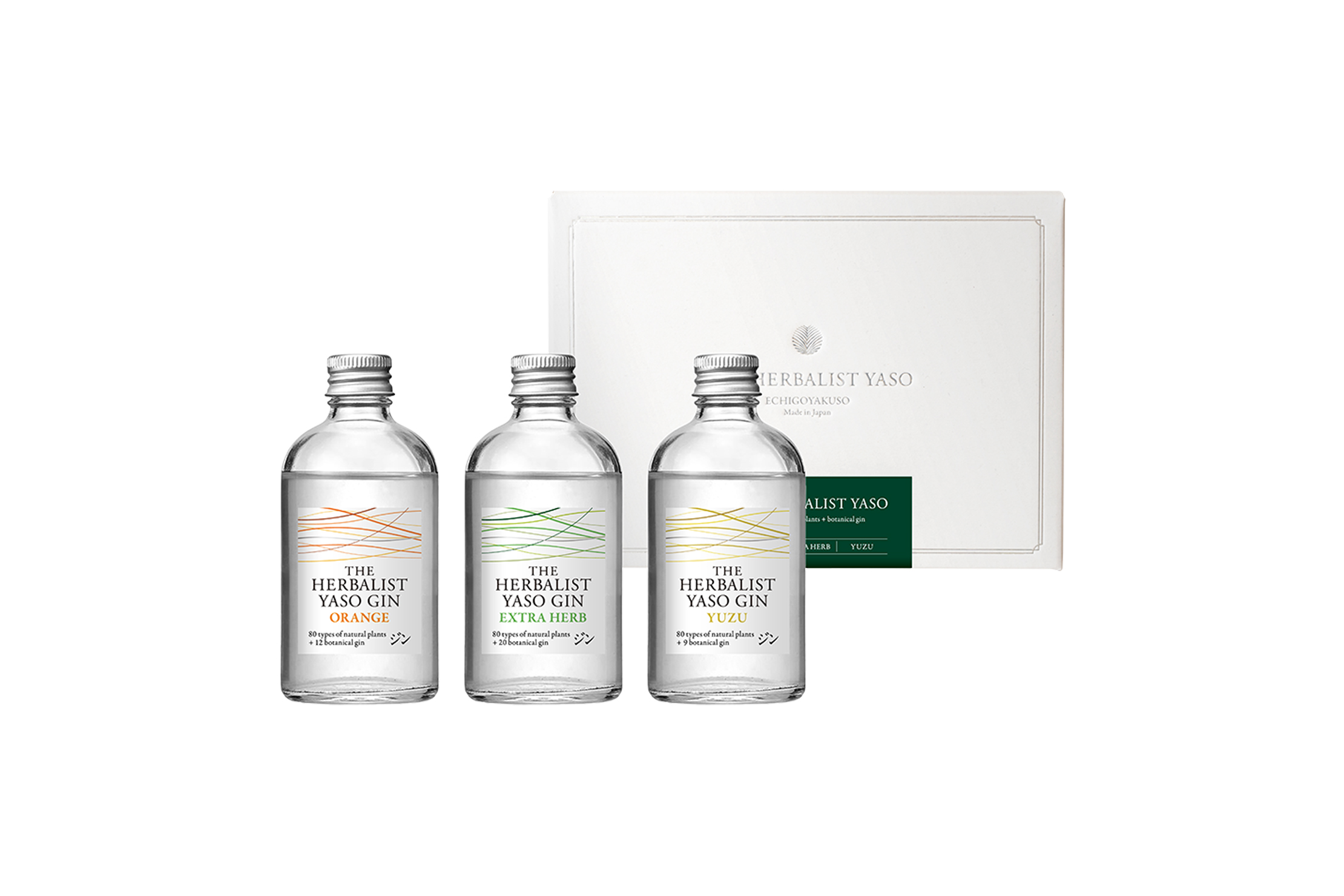 This luxury gift box features three of our regular products: THE HERBALIST YASO GIN EXTRA HERB, YASO GIN ORANGE, winner of the Best of the Best at the Tokyo Whiskey & Spirits Competition 2023, and YASO GIN YUZU, Champion at the Tasting Trendy's Spirits Challenge 2025. YASO GIN Yuzu, which won the Best of the Best at the Tokyo Whisky & Spirits Competition 2023, and YASO GIN Yuzu, which was the Champion at the Trendy's Spirits Challenge 2025.